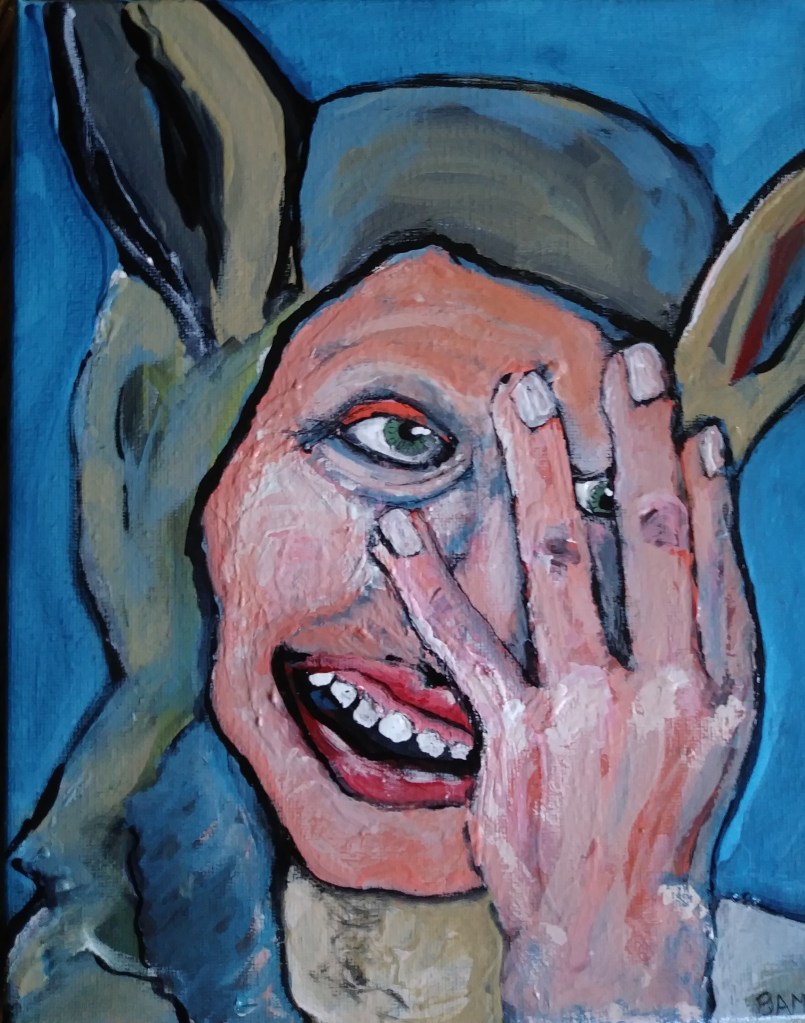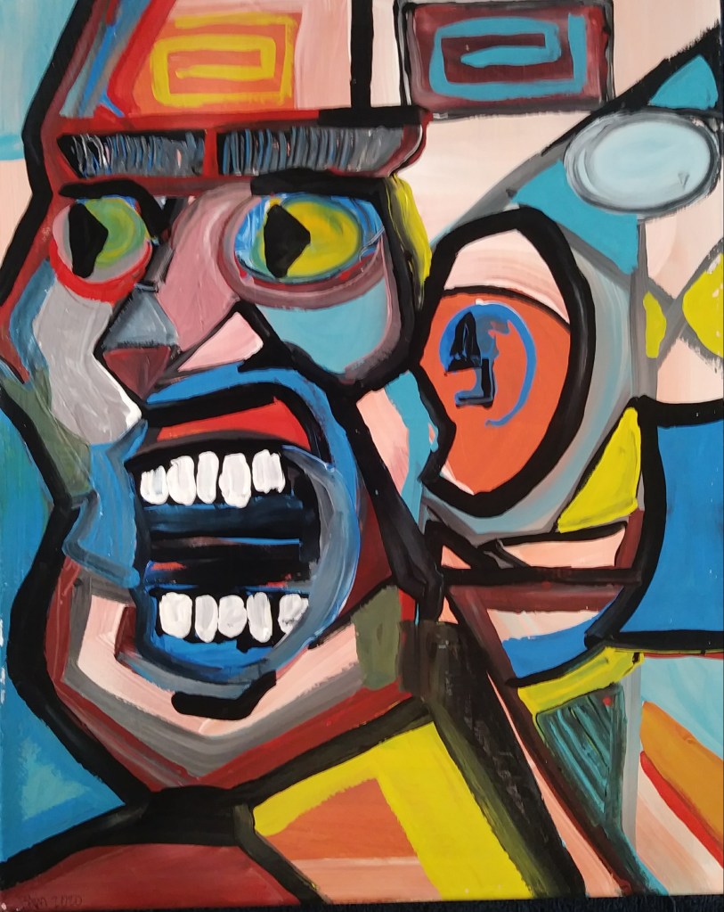 “MEGA – Make Egypt Great Again” BAM 2024. I created this painting as a part of the Pharaoh’s Dream exhibition but after the attempt on Trump’s life I chose not to display this piece for fear of people misunderstanding my intentions. To me this painting is just a funny concept, not intended to make a pro or con statement about Donald Trump or his bid for the Presidency. The atmosphere around Presidential campaigns is so heated, so combative, that many people have lost their sense of humor. Maybe at some point in a more unified future this piece can be appreciated for the light hearted idea it is.